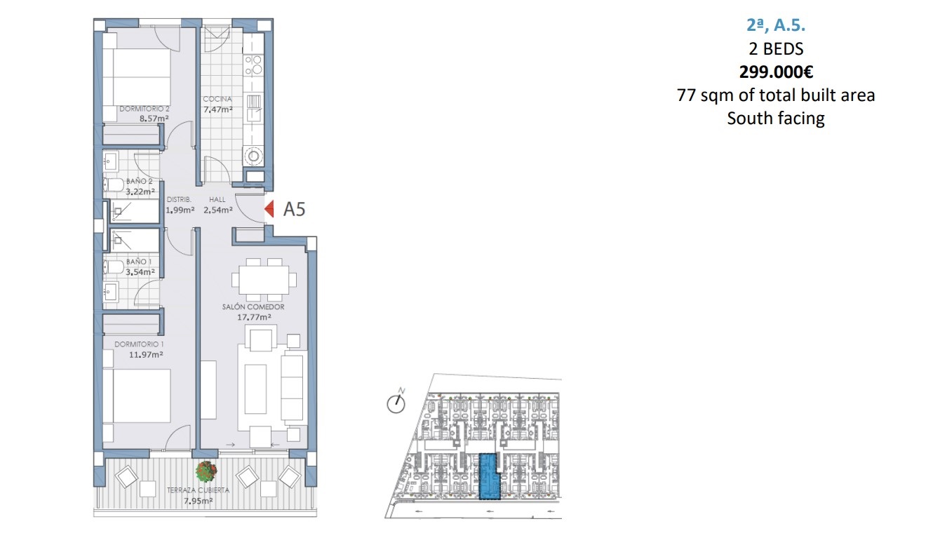 Only two units remain at the unbeatable price of €299,000, each with 2 bedrooms and 2 bathrooms (one on the 1st floor and one on the 2nd floor). Located in Las Lagunas de Mijas, these south-facing apartments include one parking space, one storage room, and access to the outdoor pool and social lounge, available March/April 2026.