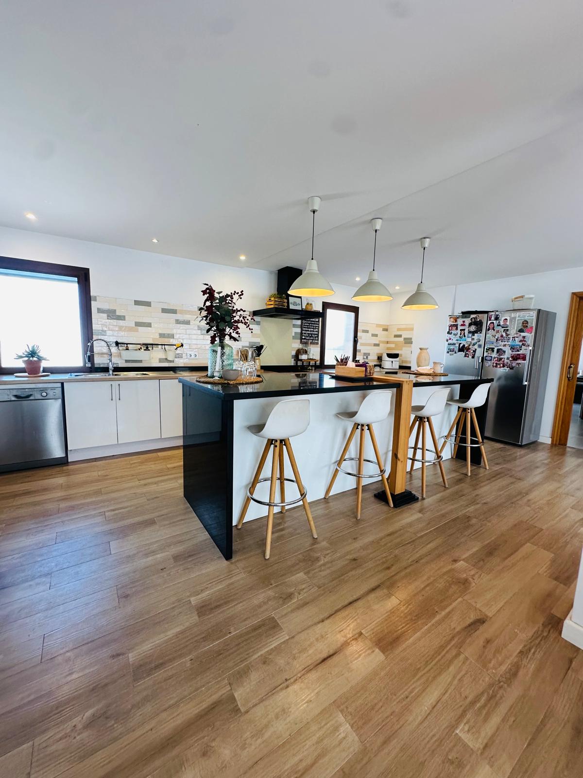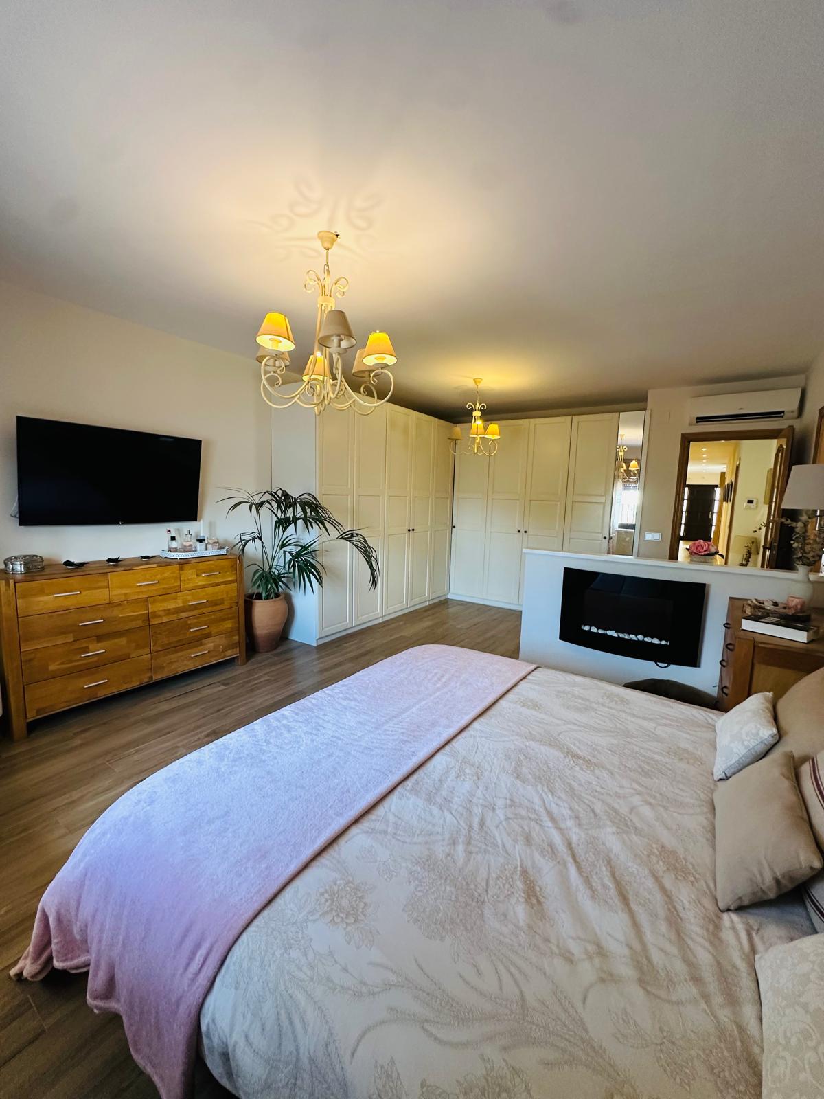 A spacious detached villa in La Sierrezuel, formerly two homes,. Featuring a modern kitchen with central island, two living rooms opening to a terrace and private saltwater pool, five bedrooms (including a walk-in closet and office), parking for up to three cars, and premium features like air conditioning, solar panels, and fireplace, family-friendly area close to amenities and just 20 minutes from Málaga Airport.